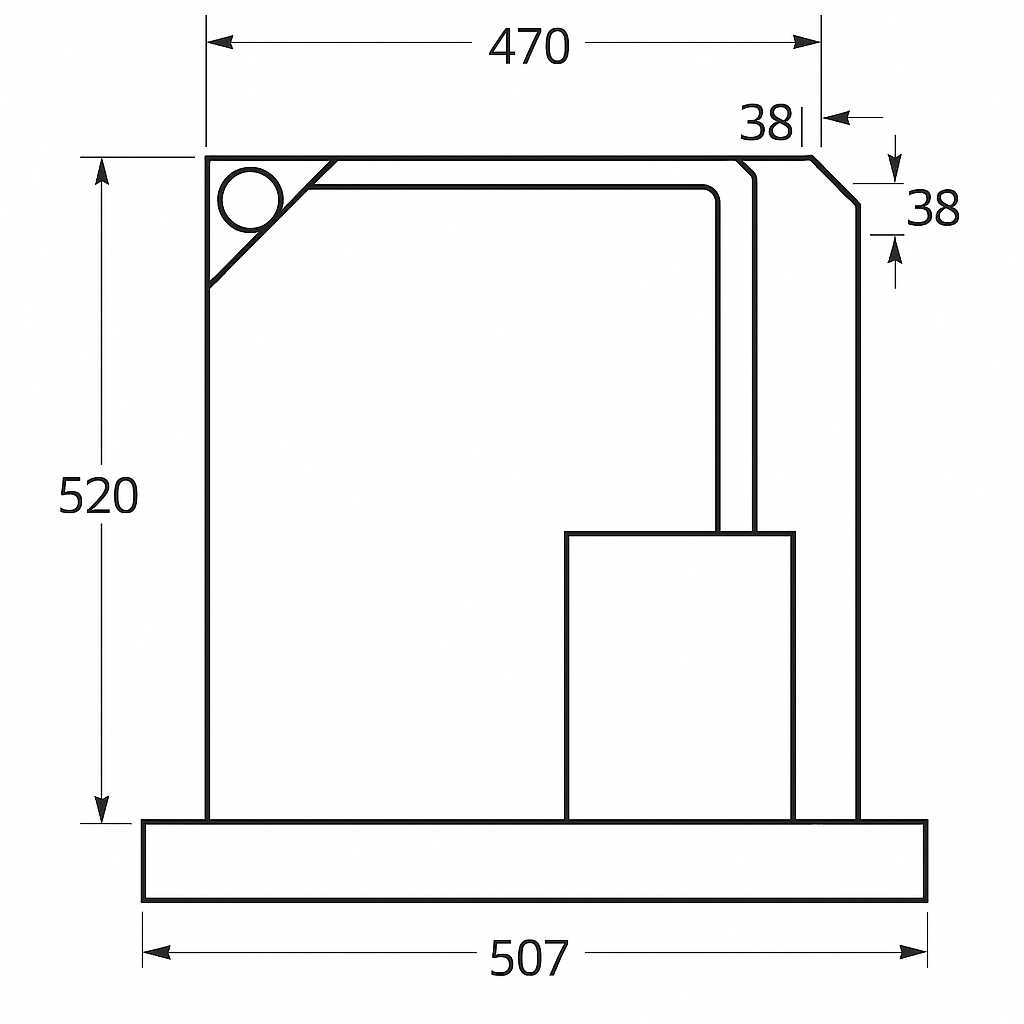 - Wymiary montażowe: 465 x 525 x 520 mm