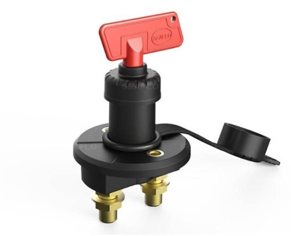 Wodoodporny główny wyłącznik zasilania elektrycznego z kluczykiem. Zastosowanie Do instalacji wodnych na jachtach i łodziach motorowych, a także w kamperach, przyczepach i zabudowach serwisowych - wszędzie tam, gdzie liczy się niezawodność i łatwy montaż.